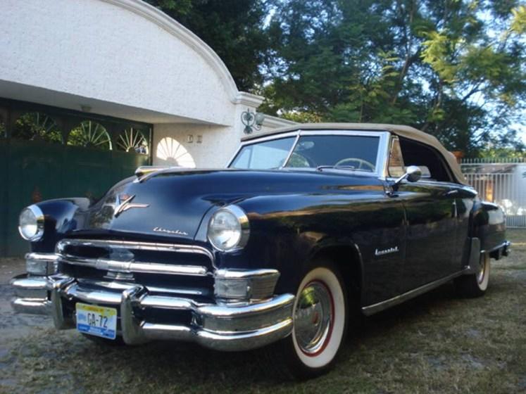 Chrysler Imperial Hemi Cabrio 1951 Exklusives extrem rares Cabrio der Superlative mit besonders drehmomentstarkem 331er "Fire Power" Hemi-V-8-Motor, 5,4 Liter, 180 PS, Fluid Torque Viergang-Halbautomaticgetriebe, Kugelumlauflenkung mit Servounterstützung, Hydraulikbremsanlage mit Servounterstützung, elegante Außenlackierung in marineblau, dazupassende zweifarbige Echtleder/Stoff Innenausstattung in marineblau und creme, Warmwasserheizung, elektrische Fensterheber, Zeituhr, originales Radio, neues automatisches Verdeck in creme, Stahlgürtelreifen mit klassischer breiter Weißwand 235-75-15, sehr viele weitere Extras!