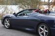Ferrari 360 Spider F1 2001 HiTech-Sportwagen der Superlative mit drehzahlfestem 3,6 Liter Achtzylinder 40V-Motor aus Aluminium und Magnesium, 403 PS, 4 je nach Drehzahl elektronisch phasenverstellbare Nockenwellen, 5 Ventile pro Zylinder, offene Hochleistungs-Sportauspuff-Anlage, mechanisches Sechsgang-Schaltgetriebe mit hydraulisch betätigtem Gangwechsel und Formel 1 Schaltwippe am Lenkrad oder wahlweise umschaltbar auf vollautomatisches Schalten, Gangwechsel erfolgt innerhalb von 0,1 Sekunden, geschwindigkeitsabhängige Servolenkung, Klimaautomatic, elektrische Fensterheber, Doppelairbag, ABS-Bremssystem mit Servounterstützung, abschaltbares ASR-System, Zentralverriegelung mit Fernbedienung, elektronische Wegfahrsperre, makellose hellrote Echtleder-Innenausstattung mit dunkelblauen Akzenten, elektrisch verstellbare Daytona-Sonder-Ledersitze, Becker Stereo-Soundsystem mit Navigationssystem und CD-Wechsler, Feuerlöscher, elektrisches Faltverdeck aus dunkelblauem Stoff, elektronisch verstellbares Fahrwerk (normal/slip/sport), Leichtmetallfelgen, Pirelli P Zero Breitreifen 215-45ZR18 vorne und 275-40ZR18 hinten, Xenon-Scheinwerfer, Scheinwerfer-Reinigungsanlage, Beschleunigung von 0-100 km/h in 4,5 Sekunden, Höchstgeschwindigkeit 296 km/h!
